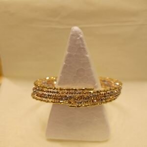 • النمط: سواره عريض يتكون من ثلاثه صفوف متوازية من الكرات الذهبية الصغيرة (ما يعرف بنمط “البريق” أو “الخرز”).
